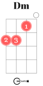 Dminor: mutató ujj az első rész második húrján, középső ujj a 2. rész 4. húrján, gyűrűs ujj a 2. rész 3. húrján
