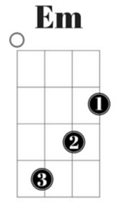 Eminor: mutató ujj a 2. rész első húrján, középső ujj a 3.rész 2. húrján, gyűrűs ujj a 4. rész 3. húrján
